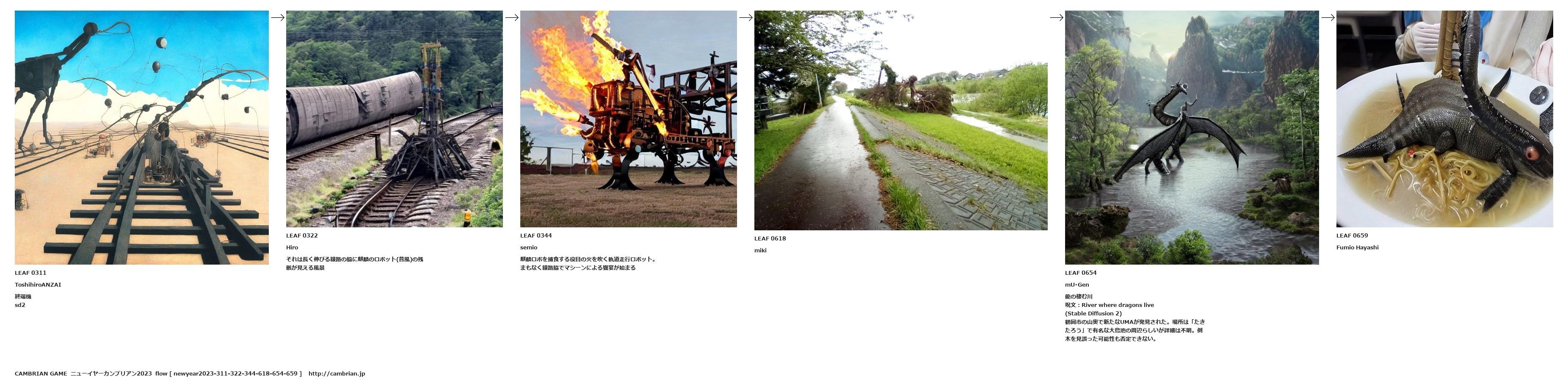 それは長く伸びる線路の脇に麒麟のロボット(昔風)の残骸が見える風景