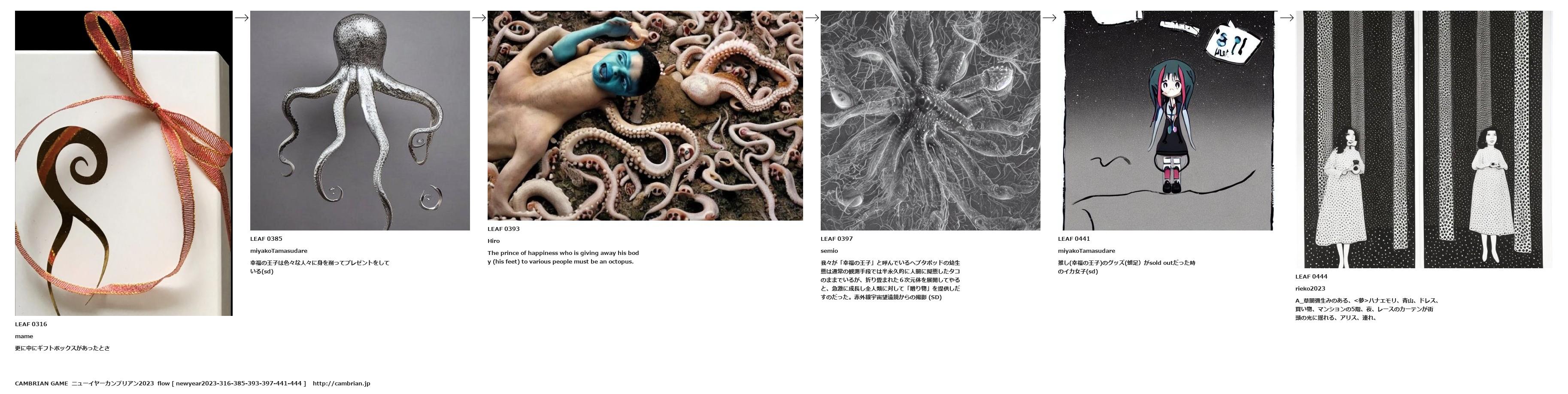 我々が「幸福の王子」と呼んでいるヘプタポッドの幼生態は通常の観測手段では半永久的に人間に擬態したタコのままでいるが、折り畳まれた6次元体を展開してやると、急激に成長し全人類に対して「贈り物」を提供しだすのだった。赤外線宇宙望遠鏡からの撮影 (SD)