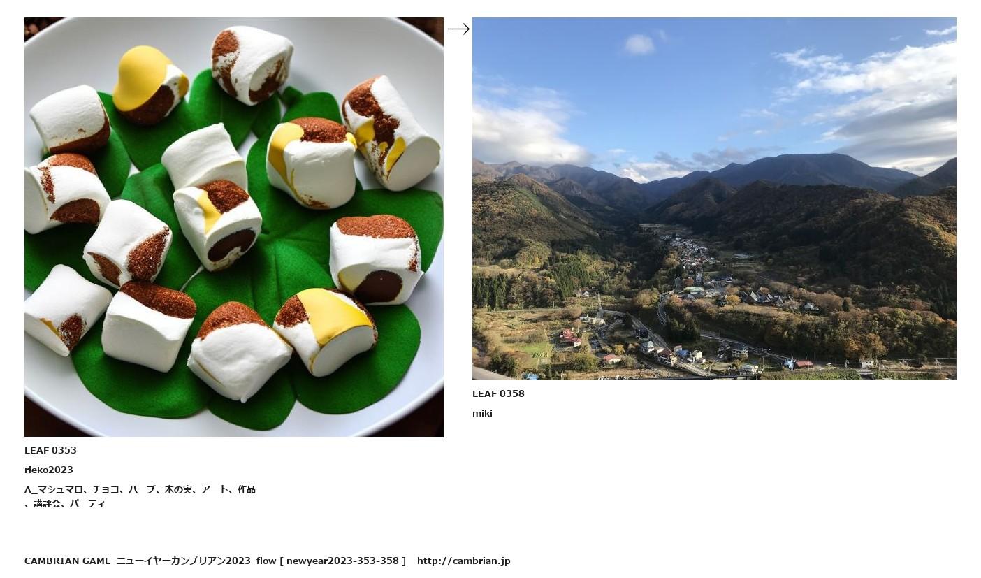 LEAF 0133フローに加えるLEAF 0353rieko2023A_マシュマロ、チョコ、ハーブ、木の実、アート、作品、講評会、パーティ↑ここから上をフローから外す↓ここから下をフローから外すLEAF 0358miki