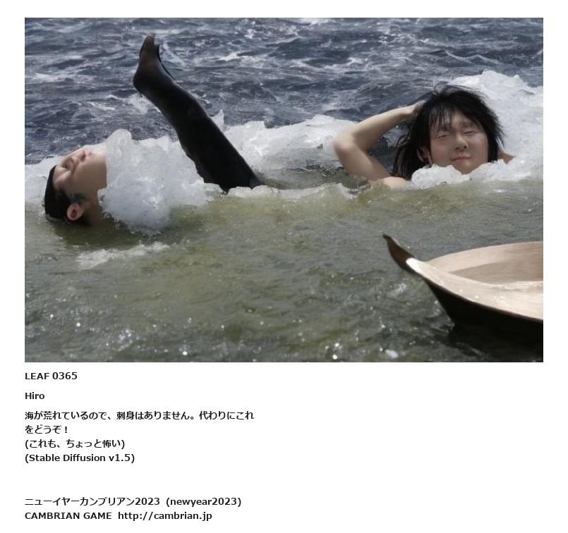 LEAF 0365Hiro海が荒れているので、刺身はありません。代わりにこれをどうぞ !(これも、ちょっと怖い)(Stable Diffusion v1.5)