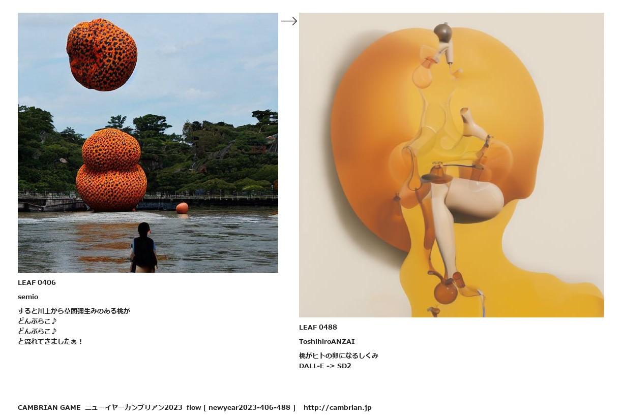 LEAF 0402フローに加えるLEAF 0406semioすると川上から草間彌生みのある桃がどんぶらこ♪どんぶらこ♪と流れてきましたぁ!↑ここから上をフローから外す↓ここから下をフローから外すLEAF 0488ToshihiroANZAI桃がヒトの卵になるしくみDALL-E -> SD2LEAF 0660フローに加えるLEAF 0490フローに加えるLEAF 0489フローに加える