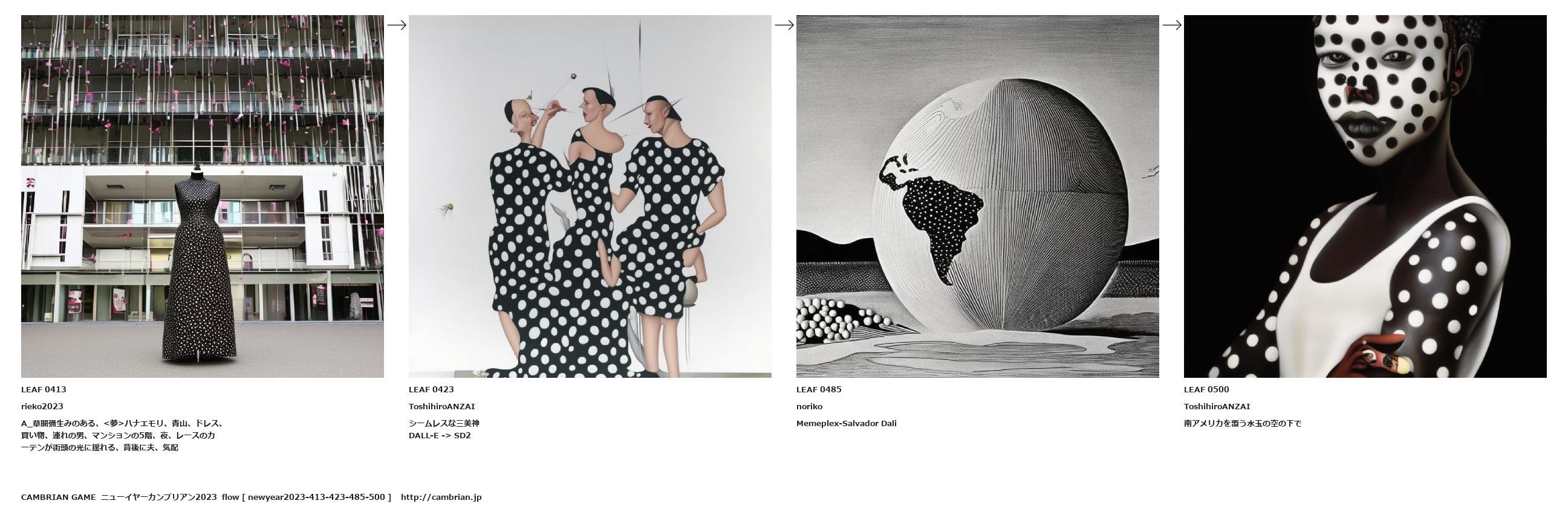 A_草間彌生みのある、<夢>ハナエモリ、青山、ドレス、買い物、連れの男、マンションの5階、夜、レースのカーテンが街頭の光に揺れる、背後に夫、気配