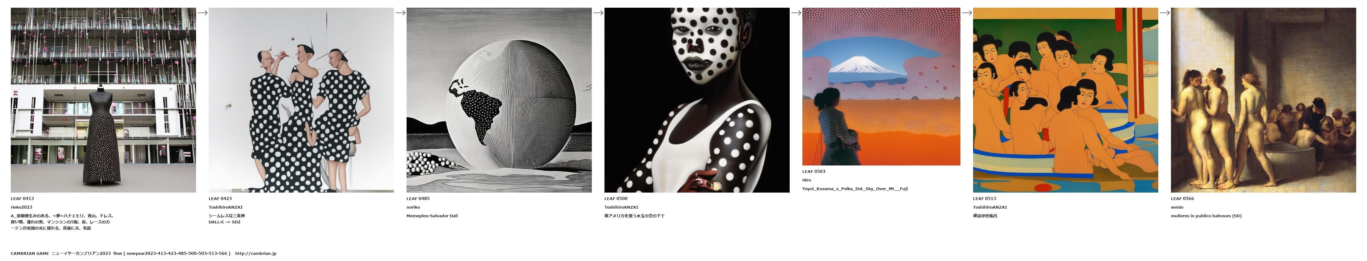 A_草間彌生みのある、<夢>ハナエモリ、青山、ドレス、買い物、連れの男、マンションの5階、夜、レースのカーテンが街頭の光に揺れる、背後に夫、気配
