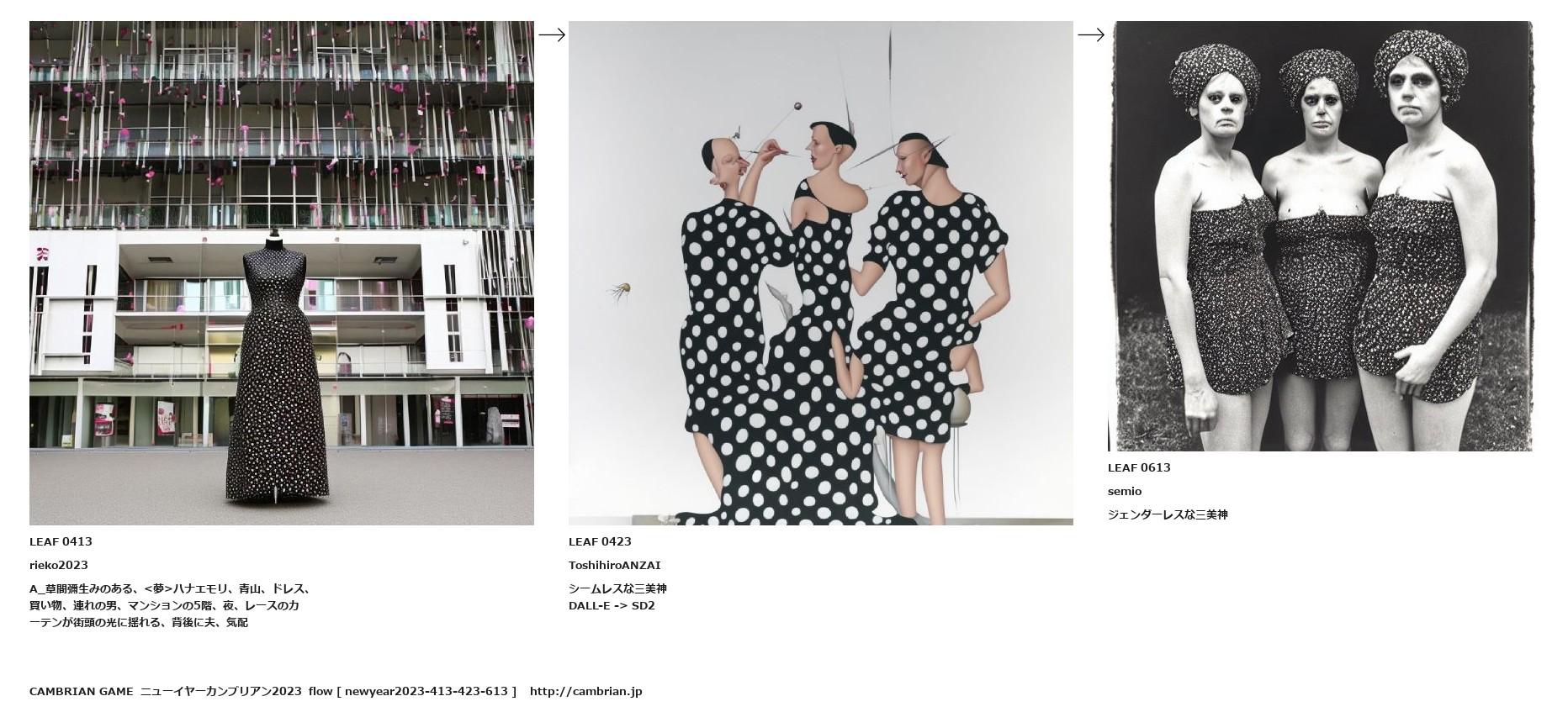 A_草間彌生みのある、<夢>ハナエモリ、青山、ドレス、買い物、連れの男、マンションの5階、夜、レースのカーテンが街頭の光に揺れる、背後に夫、気配