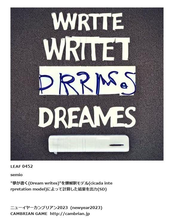 LEAF 0428フローに加えるLEAF 0452semio"夢が書く(Dream writes)"を蝉解釈モデル(cicada interpretation model)によって計算した結果を出力(SD)