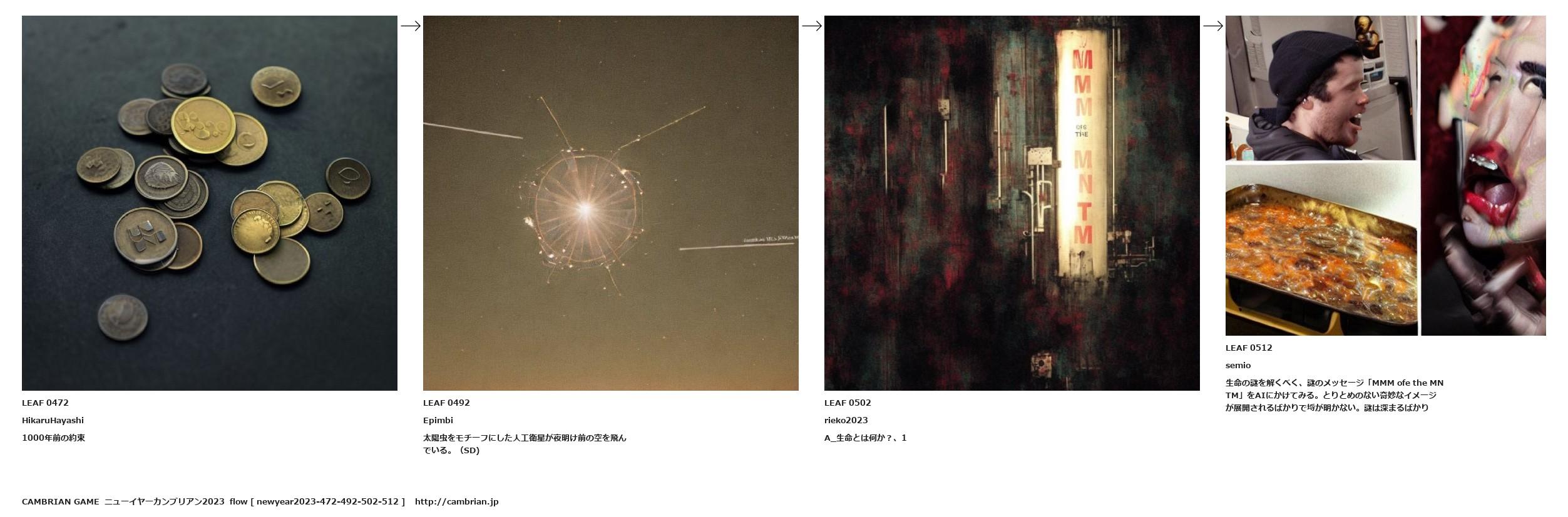 生命の謎を解くべく、謎のメッセージ「MMM ofe the MNTM」をAIにかけてみる。とりとめのない奇妙なイメージが展開されるばかりで埒が明かない。謎は深まるばかり