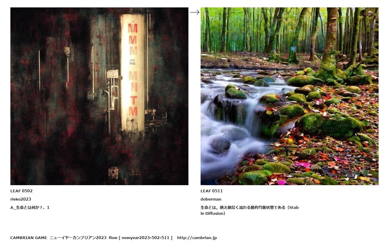 LEAF 0492フローに加えるLEAF 0502rieko2023A_生命とは何か?、1↑ここから上をフローから外す↓ここから下をフローから外すLEAF 0511doberman生命とは,絶え間なく流れる動的均衡状態である(Stable Diffusion)LEAF 0592フローに加えるLEAF 0524フローに加える