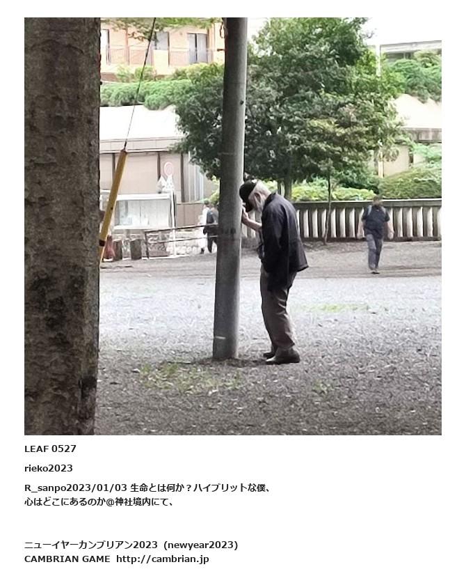 LEAF 0476フローに加えるLEAF 0527rieko2023R_sanpo2023/01/03 生命とは何か?ハイブリットな僕、心はどこにあるのか@神社境内にて、LEAF 0535フローに加える
