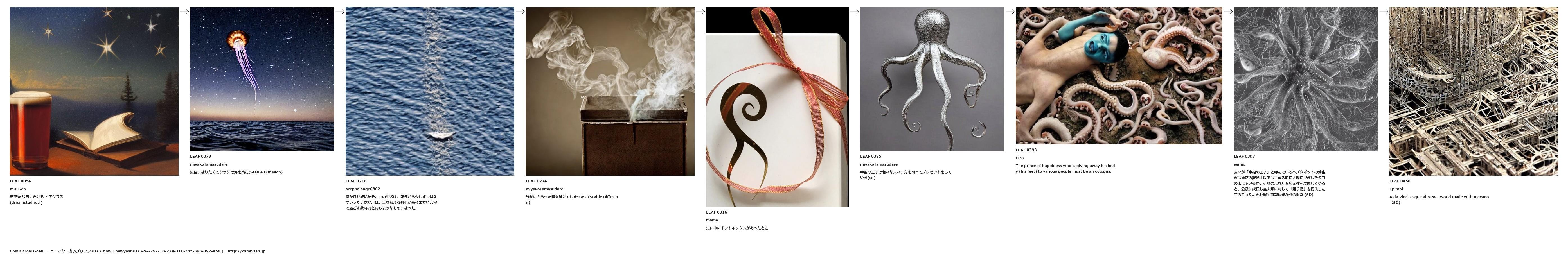 我々が「幸福の王子」と呼んでいるヘプタポッドの幼生態は通常の観測手段では半永久的に人間に擬態したタコのままでいるが、折り畳まれた6次元体を展開してやると、急激に成長し全人類に対して「贈り物」を提供しだすのだった。赤外線宇宙望遠鏡からの撮影 (SD)