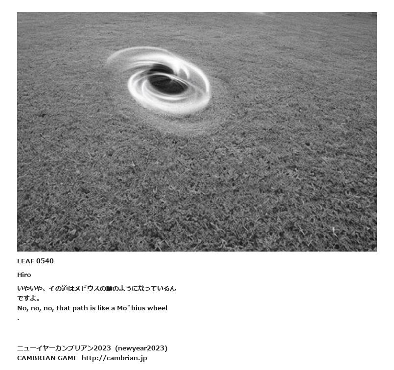 LEAF 0536フローに加えるLEAF 0540Hiroいやいや、その道はメビウスの輪のようになっているんですよ。No, no, no, that path is like a Möbius wheel.LEAF 0750フローに加える