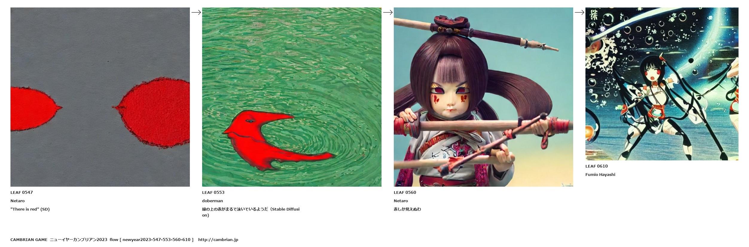 緑の上の赤がまるで泳いでいるようだ(Stable Diffusion)