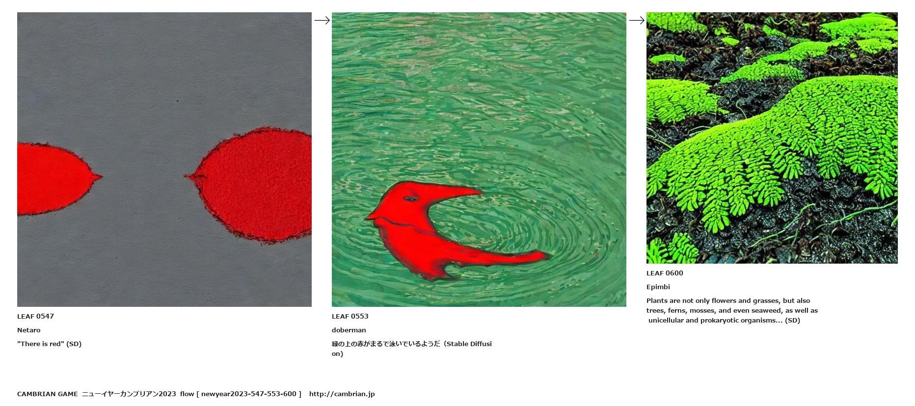 緑の上の赤がまるで泳いでいるようだ(Stable Diffusion)