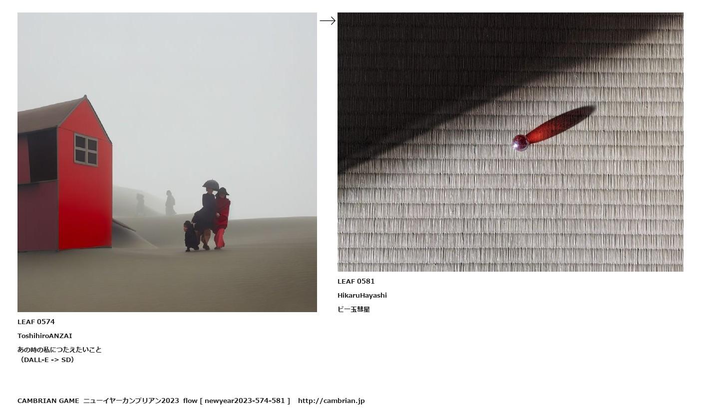 LEAF 0569フローに加えるLEAF 0574ToshihiroANZAIあの時の私につたえたいこと(DALL-E -> SD)↑ここから上をフローから外す↓ここから下をフローから外すLEAF 0581HikaruHayashiビー玉彗星