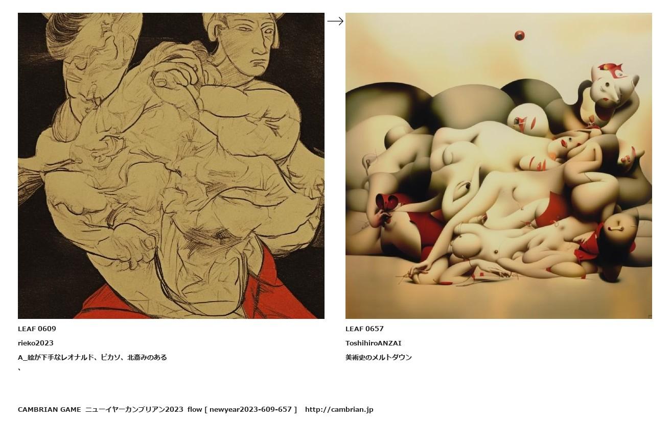LEAF 0554フローに加えるLEAF 0609rieko2023A_絵が下手なレオナルド、ピカソ、北斎みのある、↑ここから上をフローから外す↓ここから下をフローから外すLEAF 0657ToshihiroANZAI美術史のメルトダウン