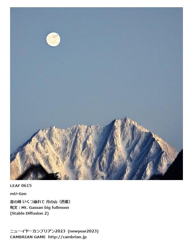 LEAF 0404フローに加えるLEAF 0615mU・Gen雲の峰 いくつ崩れて 月の山(芭蕉)呪文:Mt. Gassan big fullmoon(Stable Diffusion 2)LEAF 0787フローに加えるLEAF 0655フローに加えるLEAF 0640フローに加える