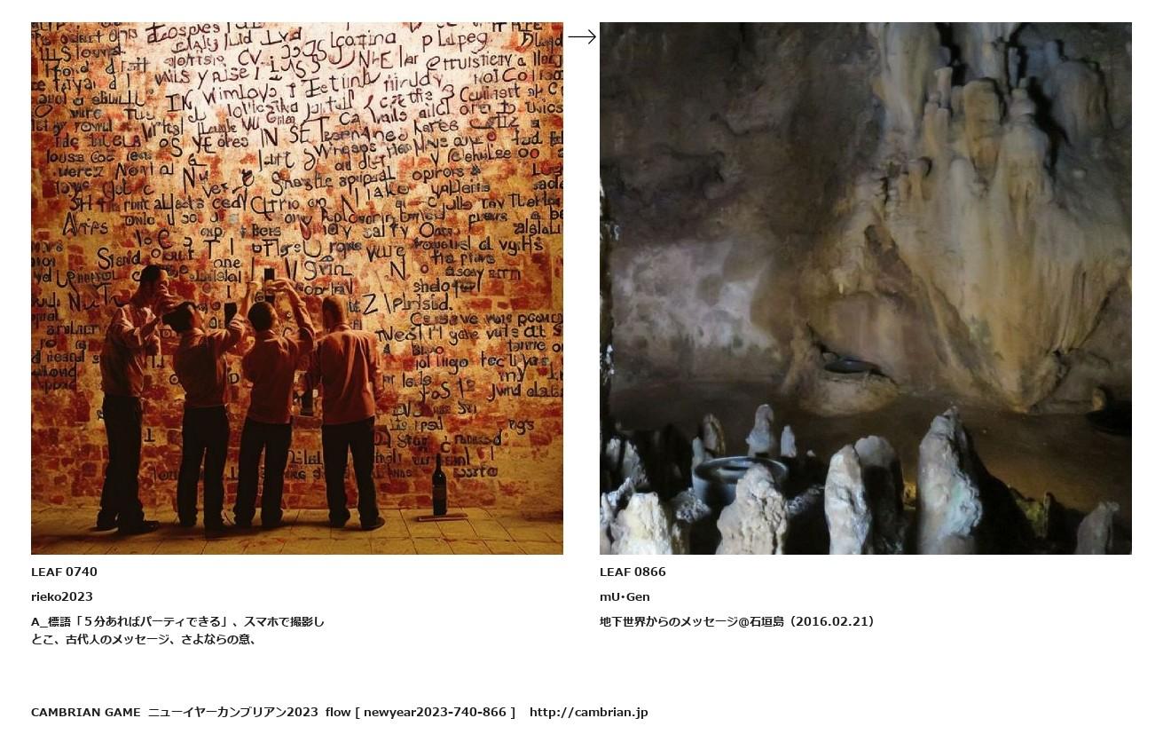 A_標語「5分あればパーティできる」、スマホで撮影しとこ、古代人のメッセージ、さよならの意、