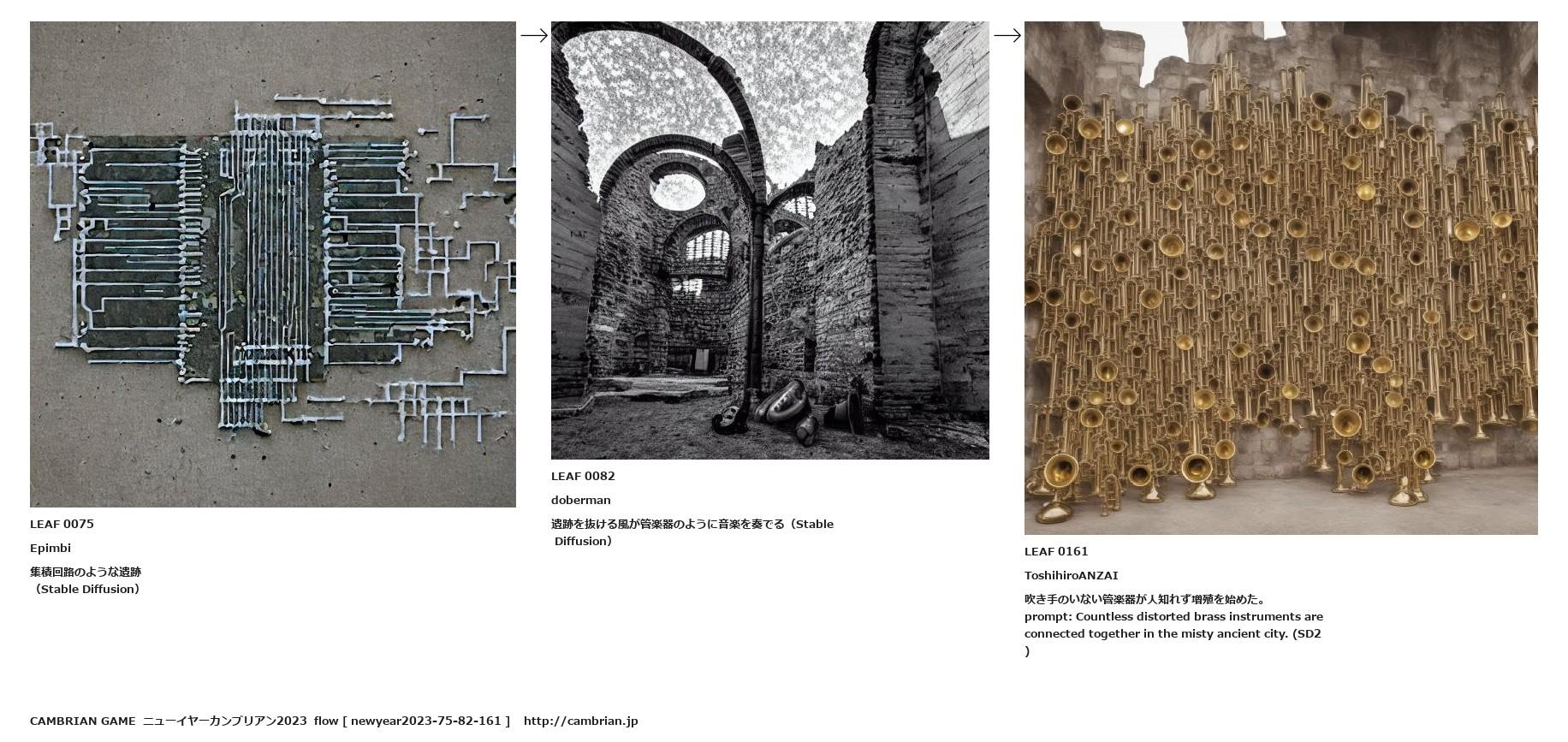 遺跡を抜ける風が管楽器のように音楽を奏でる(Stable Diffusion)