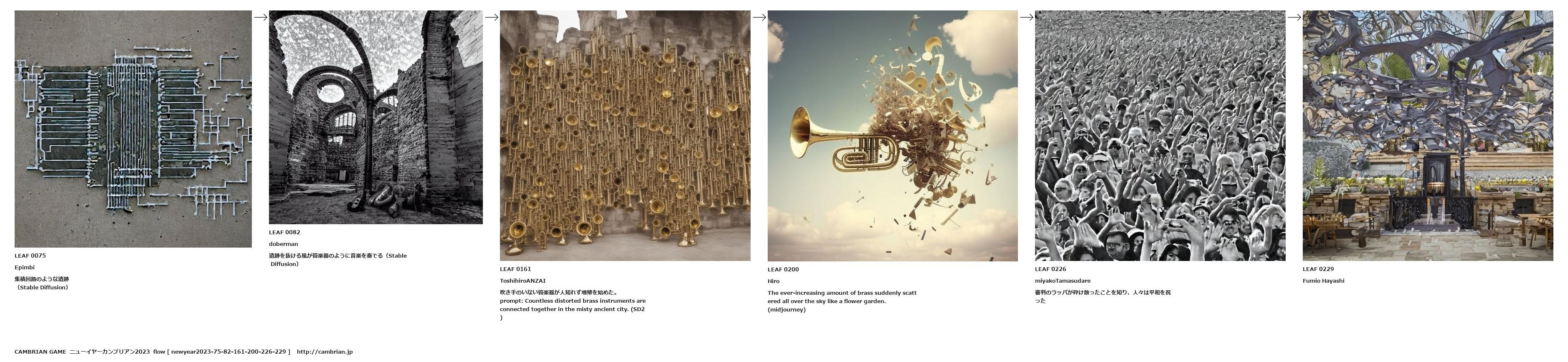 遺跡を抜ける風が管楽器のように音楽を奏でる(Stable Diffusion)