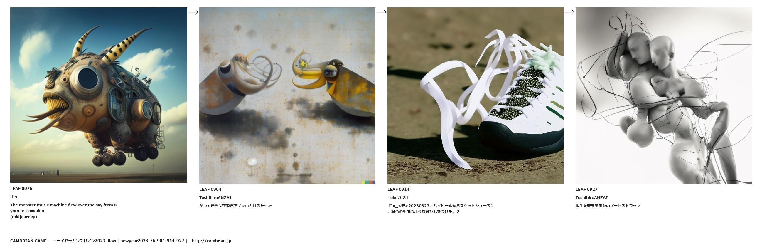 A_<夢>20230323、ハイヒールやバスケットシューズに、緑色の毛虫のような靴ひもをつけた、2