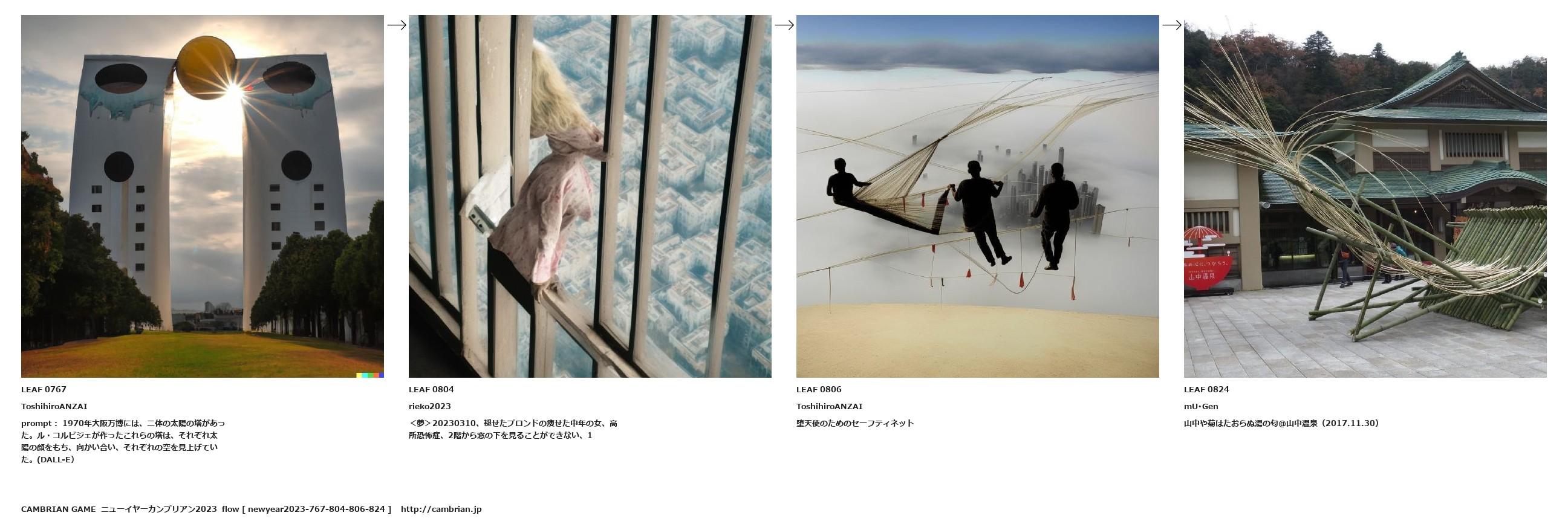 prompt: 1970年大阪万博には、二体の太陽の塔があった。ル・コルビジェが作ったこれらの塔は、それぞれ太陽の顔をもち、向かい合い、それぞれの空を見上げていた。(DALL-E)