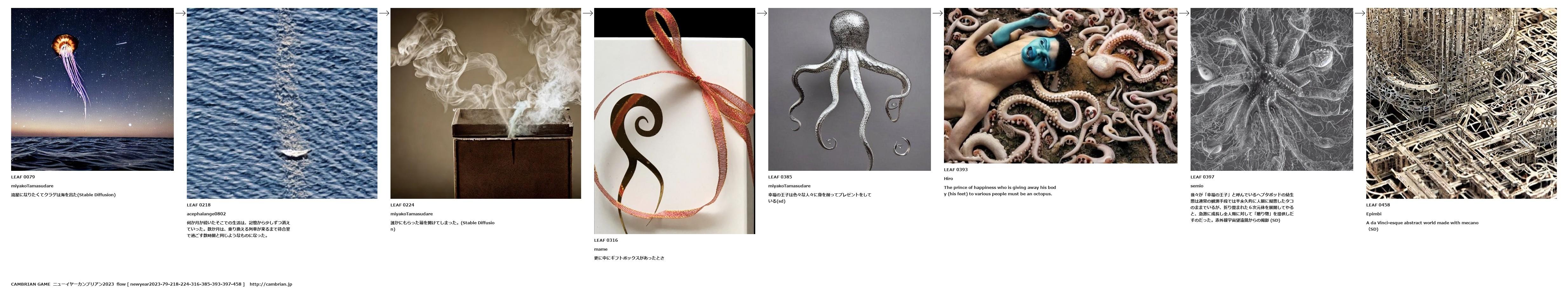我々が「幸福の王子」と呼んでいるヘプタポッドの幼生態は通常の観測手段では半永久的に人間に擬態したタコのままでいるが、折り畳まれた6次元体を展開してやると、急激に成長し全人類に対して「贈り物」を提供しだすのだった。赤外線宇宙望遠鏡からの撮影 (SD)