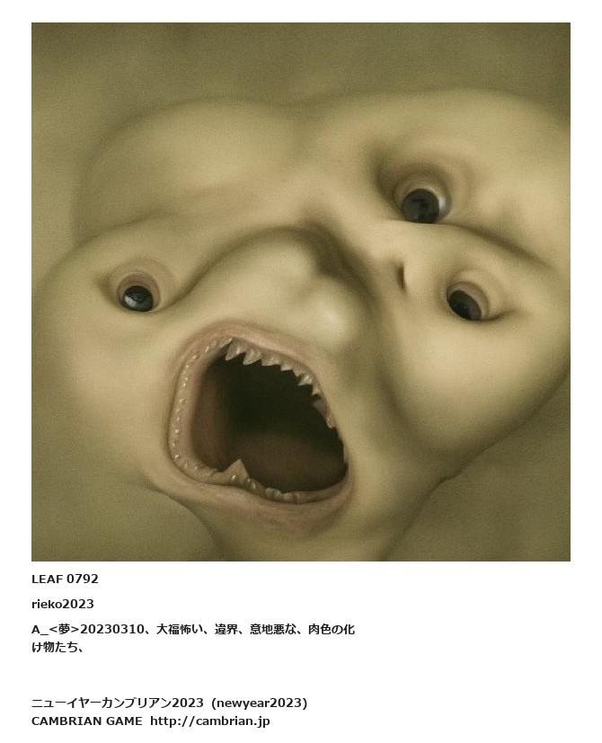 LEAF 0791フローに加えるLEAF 0792rieko2023A_<夢>20230310、大福怖い、違界、意地悪な、肉色の化け物たち、LEAF 0807フローに加えるLEAF 0795フローに加える