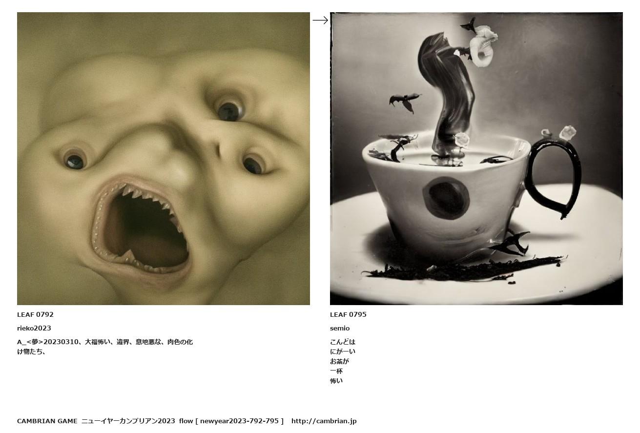 LEAF 0791フローに加えるLEAF 0792rieko2023A_<夢>20230310、大福怖い、違界、意地悪な、肉色の化け物たち、↑ここから上をフローから外す↓ここから下をフローから外すLEAF 0795semioこんどはにがーいお茶が一杯怖い