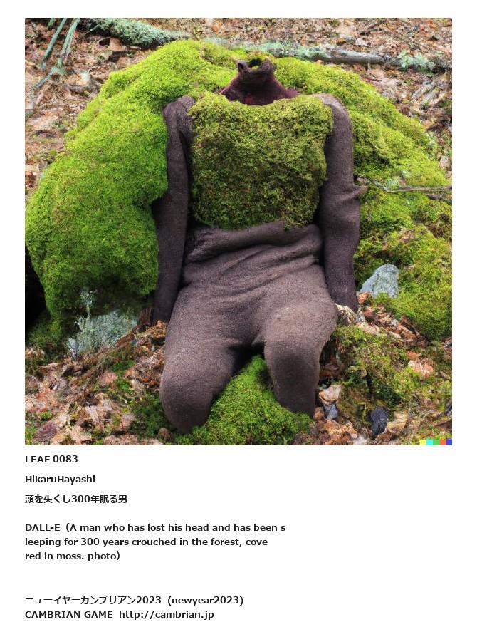 LEAF 0038フローに加えるLEAF 0083HikaruHayashi頭を失くし300年眠る男DALL-E(A man who has lost his head and has been sleeping for 300 years crouched in the forest, covered in moss. photo)LEAF 0717フローに加えるLEAF 0264フローに加えるLEAF 0193フローに加えるLEAF 0159フローに加えるLEAF 0093フローに加える