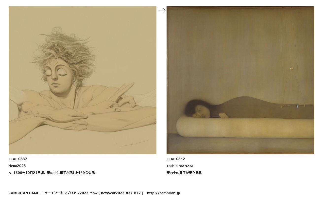LEAF 0815フローに加えるLEAF 0837rieko2023A_1600年10月21日頃、夢の中に童子が現れ神託を受ける↑ここから上をフローから外す↓ここから下をフローから外すLEAF 0842ToshihiroANZAI夢の中の童子が夢を見るLEAF 0850フローに加える