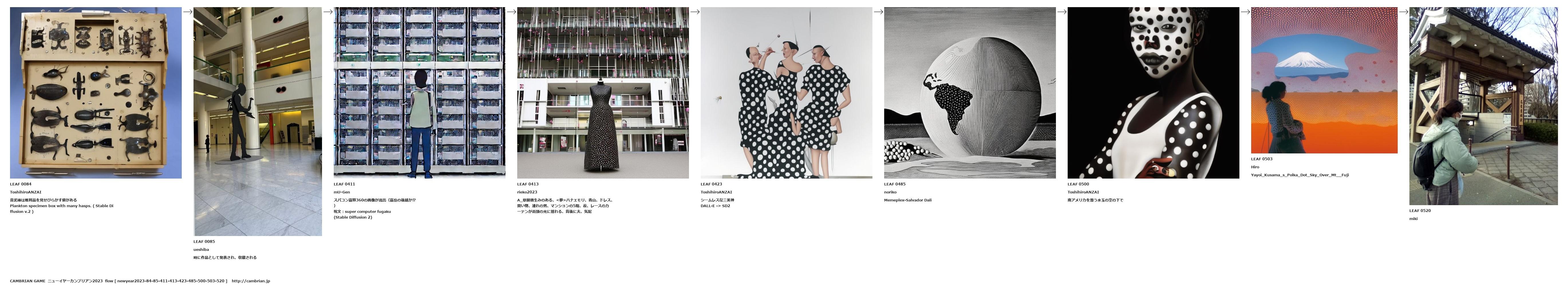 A_草間彌生みのある、<夢>ハナエモリ、青山、ドレス、買い物、連れの男、マンションの5階、夜、レースのカーテンが街頭の光に揺れる、背後に夫、気配