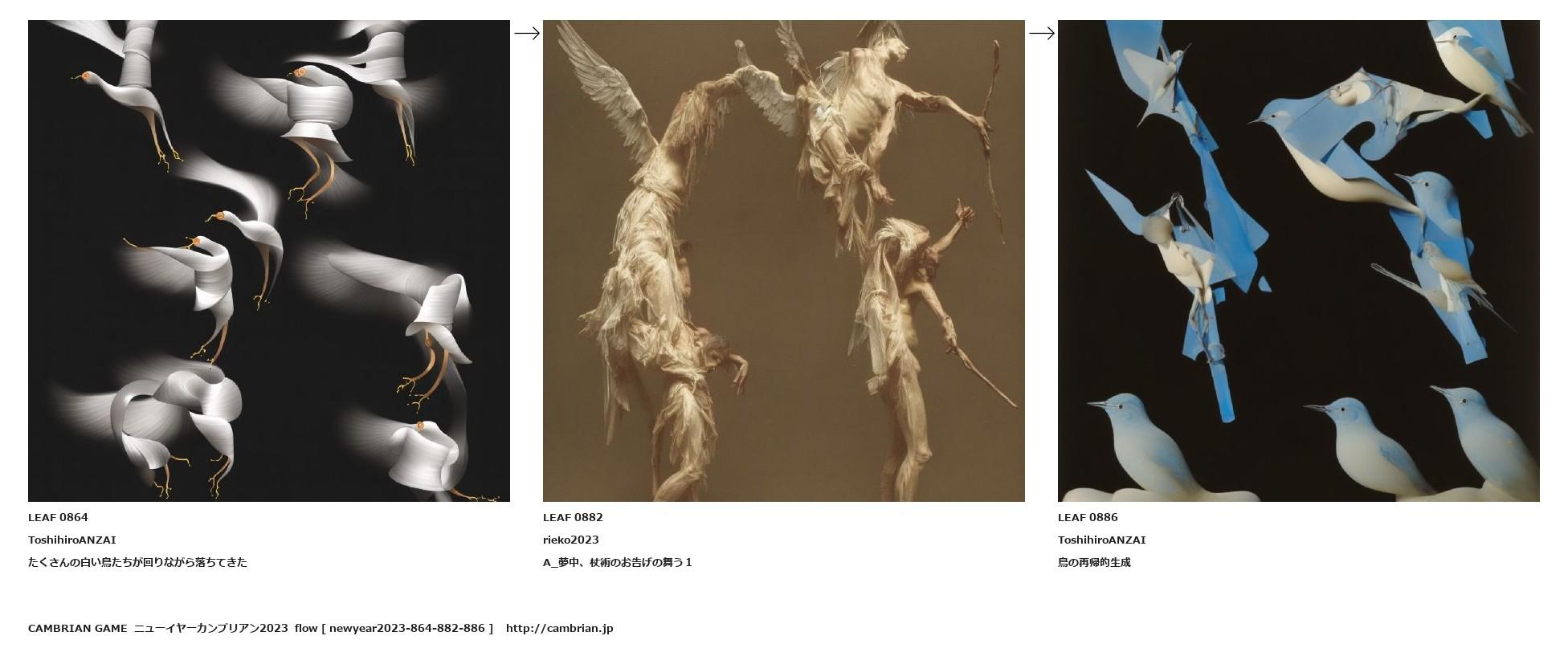 たくさんの白い鳥たちが回りながら落ちてきた