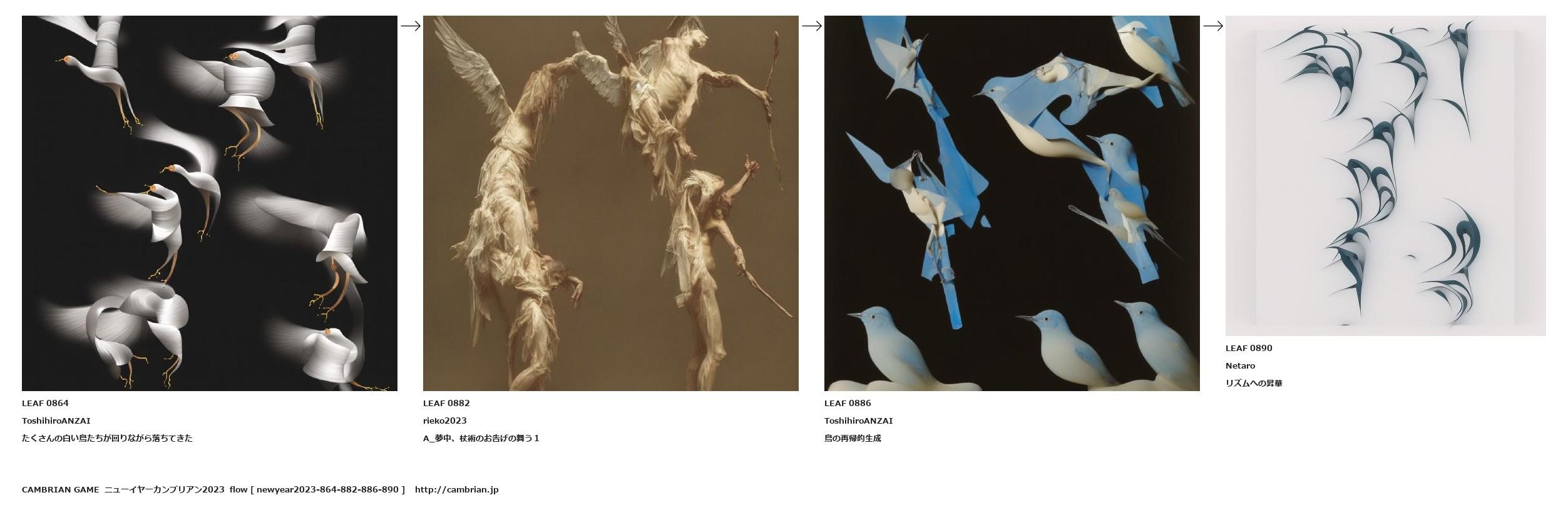 たくさんの白い鳥たちが回りながら落ちてきた