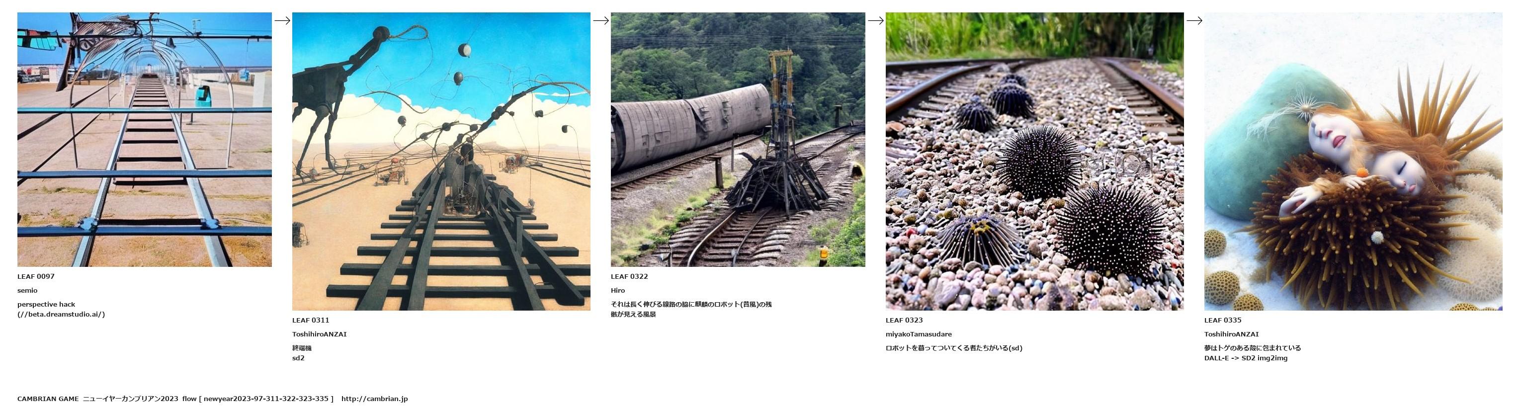 それは長く伸びる線路の脇に麒麟のロボット(昔風)の残骸が見える風景