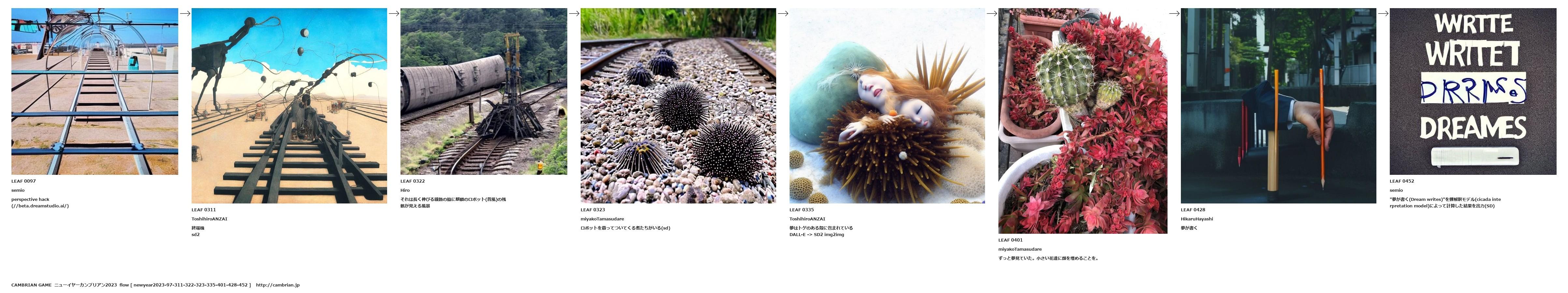 "夢が書く(Dream writes)"を蝉解釈モデル(cicada interpretation model)によって計算した結果を出力(SD)