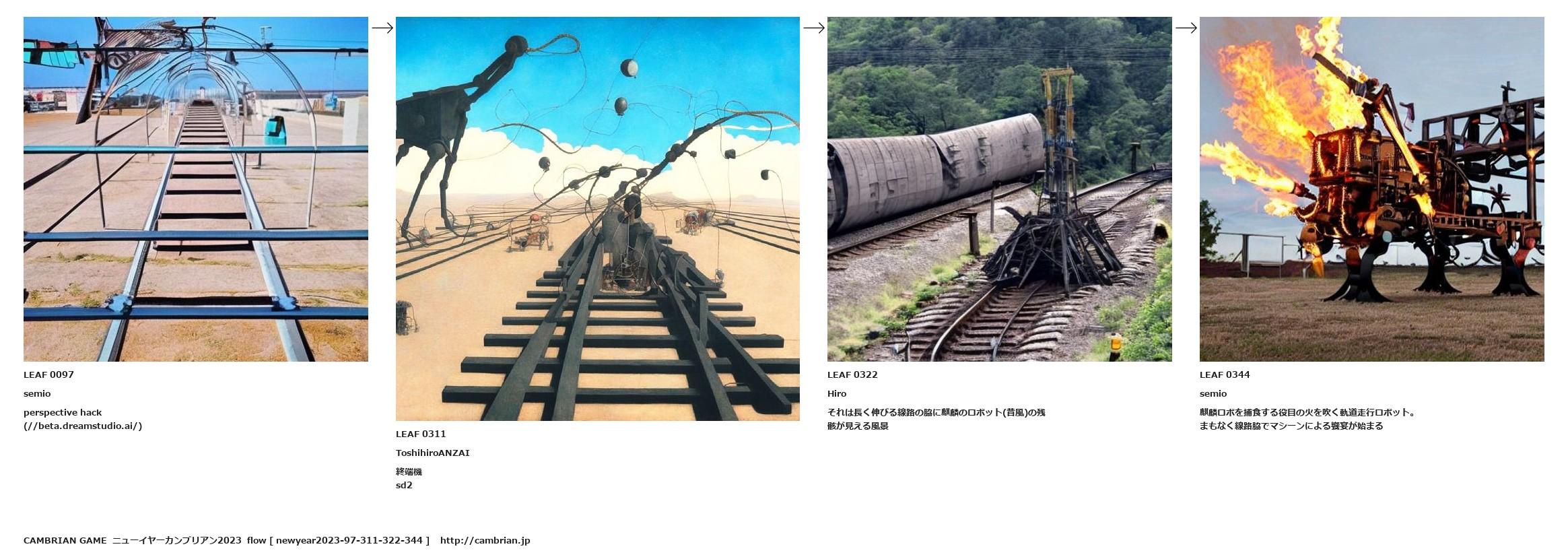 それは長く伸びる線路の脇に麒麟のロボット(昔風)の残骸が見える風景