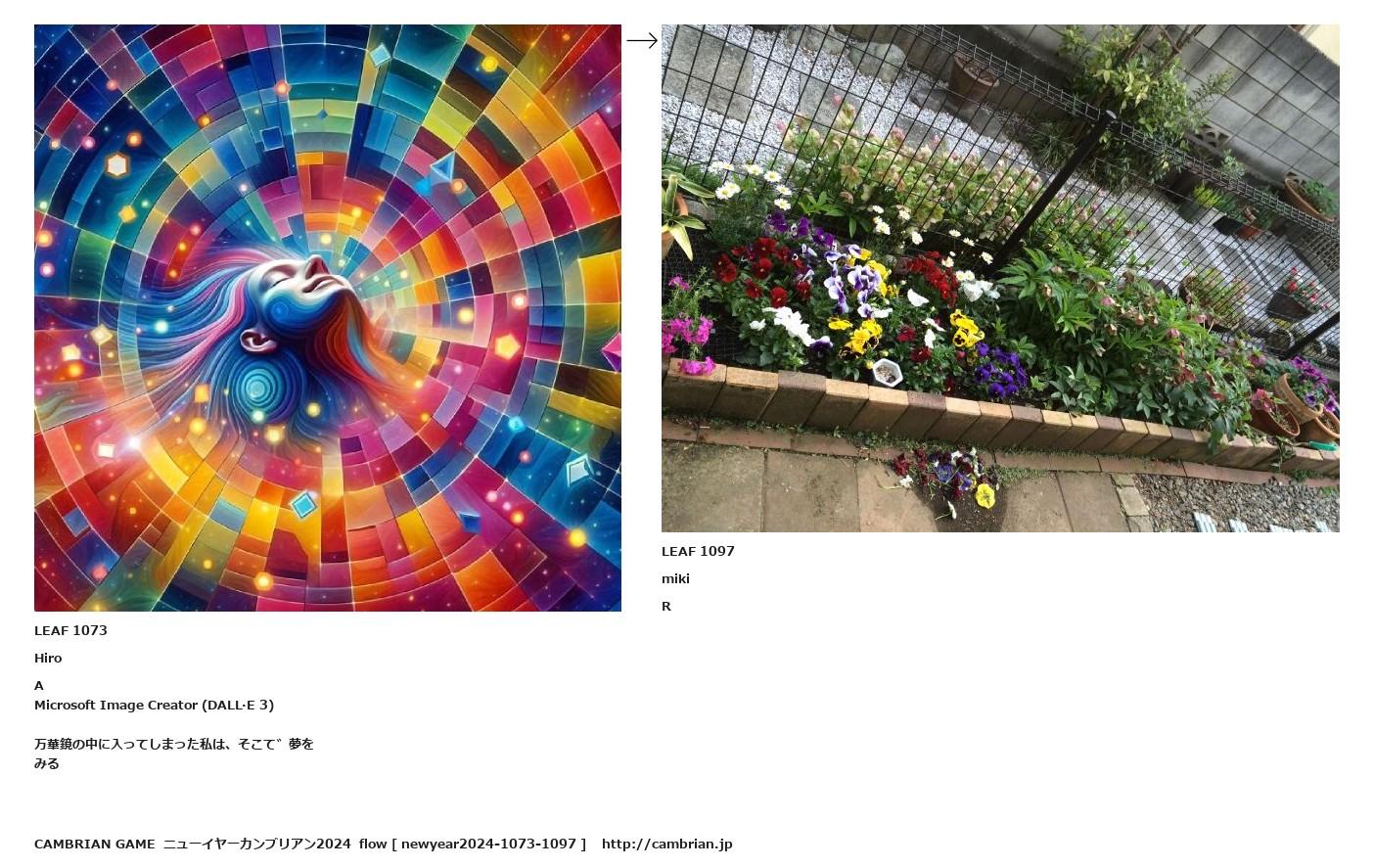 LEAF 1062フローに加えるLEAF 1073HiroAMicrosoft Image Creator (DALL·E 3)万華鏡の中に入ってしまった私は、そこで夢をみる↑ここから上をフローから外す↓ここから下をフローから外すLEAF 1097mikiRLEAF 1100フローに加える