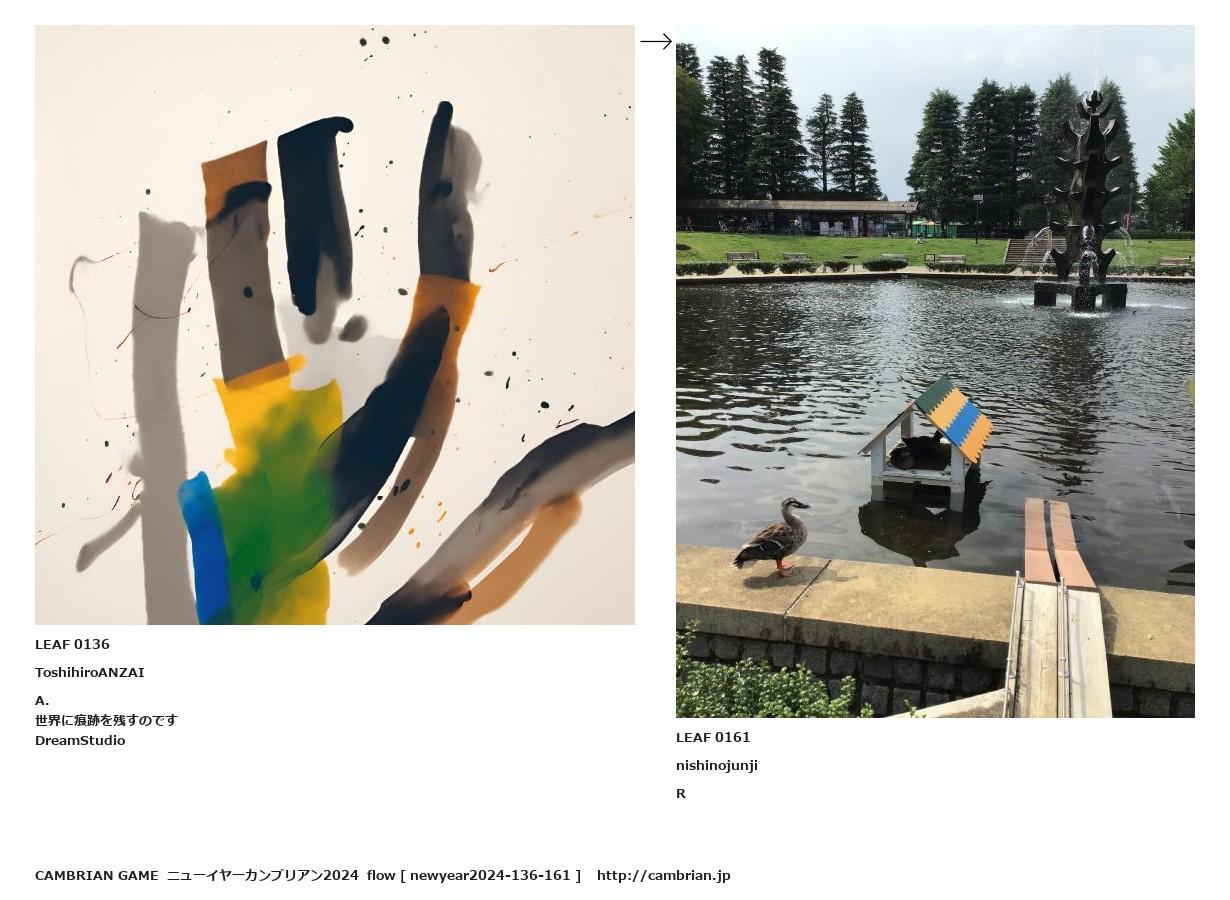 LEAF 0128フローに加えるLEAF 0136ToshihiroANZAIA.世界に痕跡を残すのですDreamStudio↑ここから上をフローから外す↓ここから下をフローから外すLEAF 0161nishinojunjiR