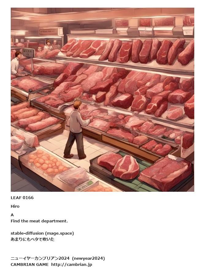LEAF 0083フローに加えるLEAF 0166HiroAFind the meat department.stable-diffusion (mage.space) あまりにもベタで吹いたLEAF 0230フローに加える