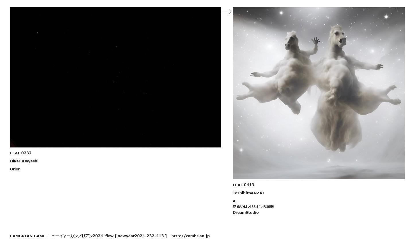 LEAF 0221フローに加えるLEAF 0232HikaruHayashiOrion↑ここから上をフローから外す↓ここから下をフローから外すLEAF 0413ToshihiroANZAIA.あるいはオリオンの臓器DreamStudio