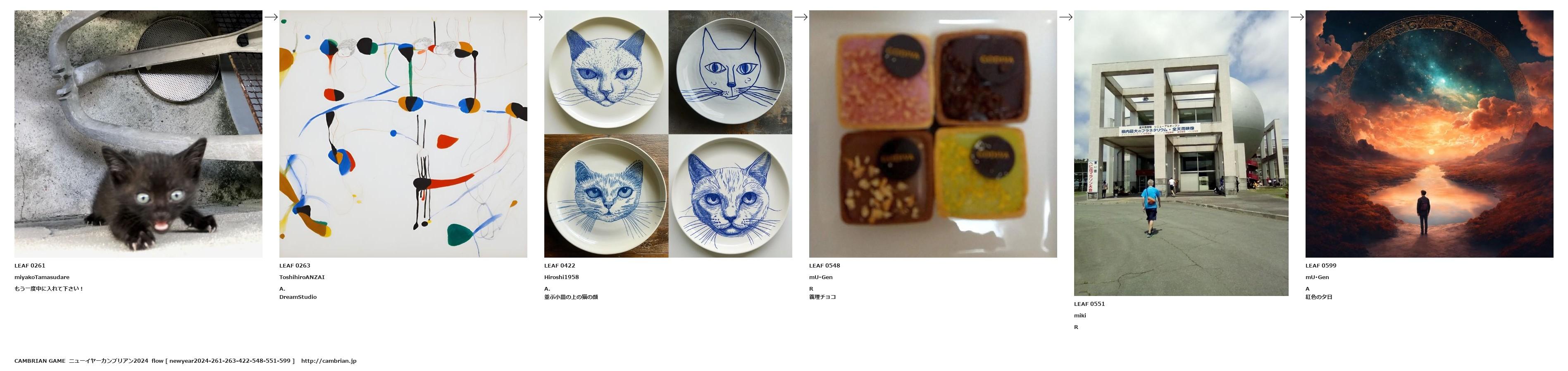 並ぶ小皿の上の猫の顔