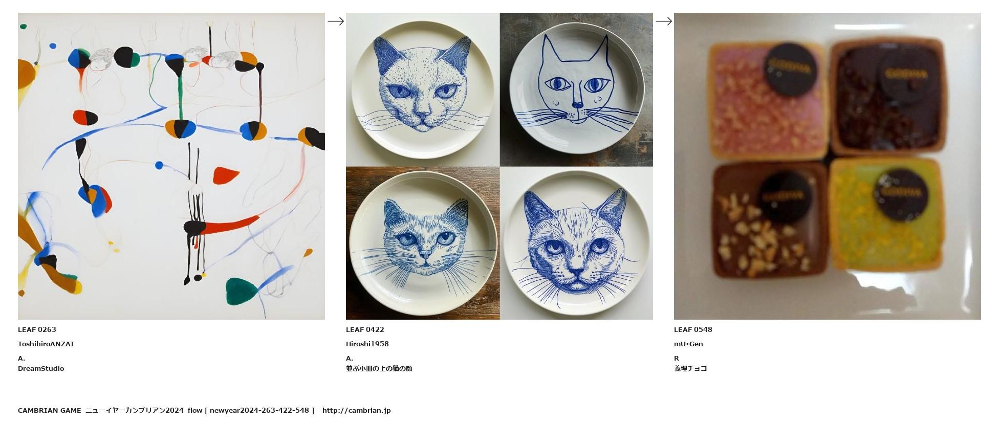 並ぶ小皿の上の猫の顔