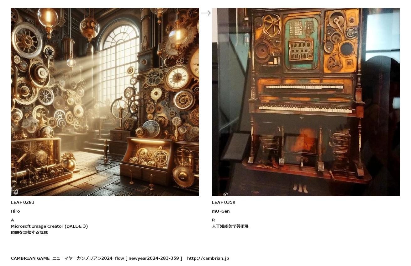 LEAF 0280フローに加えるLEAF 0283HiroAMicrosoft Image Creator (DALL·E 3)時間を調整する機械↑ここから上をフローから外す↓ここから下をフローから外すLEAF 0359mU・GenR人工知能美学芸術展LEAF 0904フローに加えるLEAF 0366フローに加える