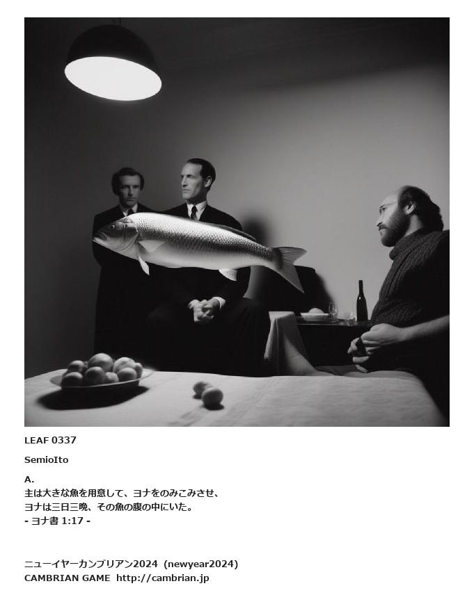 LEAF 0328フローに加えるLEAF 0337SemioItoA.主は大きな魚を用意して、ヨナをのみこみさせ、ヨナは三日三晩、その魚の腹の中にいた。- ヨナ書 1:17 -LEAF 0372フローに加える