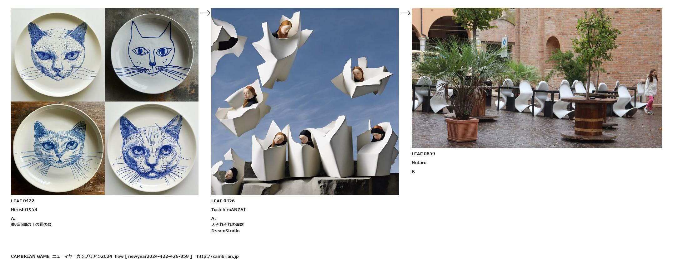 LEAF 0263フローに加えるLEAF 0422Hiroshi1958A.並ぶ小皿の上の猫の顔↑ここから上をフローから外す↓ここから下をフローから外すLEAF 0426ToshihiroANZAIA.人それぞれの陶器DreamStudio↑ここから上をフローから外す↓ここから下をフローから外すLEAF 0859NetaroR