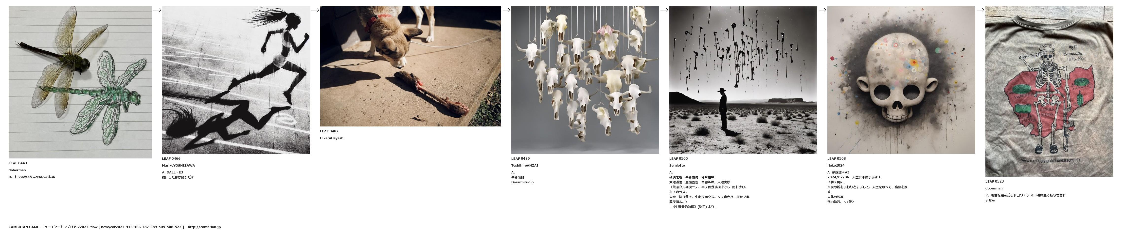 (荒涼タル砂漠ニテ、牛ノ骨ガ 突如トシテ 雨トナリ、打チ鳴ラス。