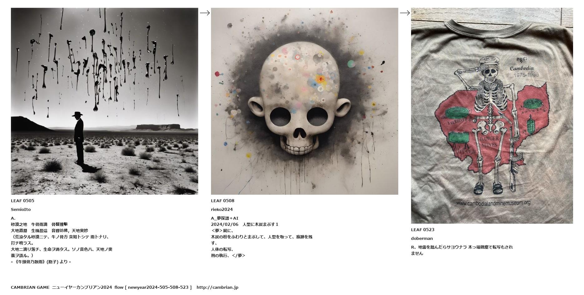 (荒涼タル砂漠ニテ、牛ノ骨ガ 突如トシテ 雨トナリ、打チ鳴ラス。