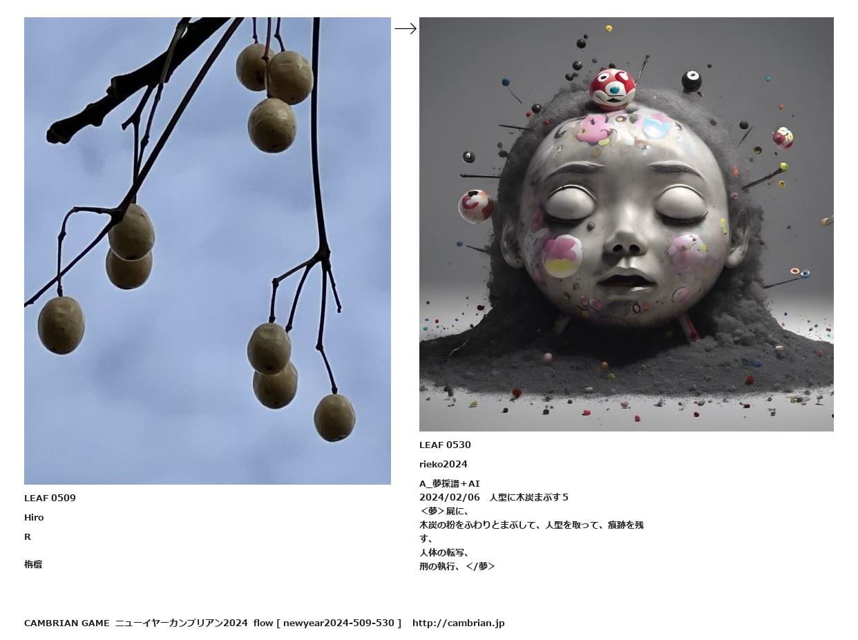LEAF 0507フローに加えるLEAF 0509HiroR栴檀↑ここから上をフローから外す↓ここから下をフローから外すLEAF 0530rieko2024A_夢採譜+AI2024/02/06 人型に木炭まぶす5<夢>屍に、木炭の粉をふわりとまぶして、人型を取って、痕跡を残す、人体の転写、刑の執行、</夢>LEAF 0619フローに加えるLEAF 0540フローに加えるLEAF 0534フローに加える