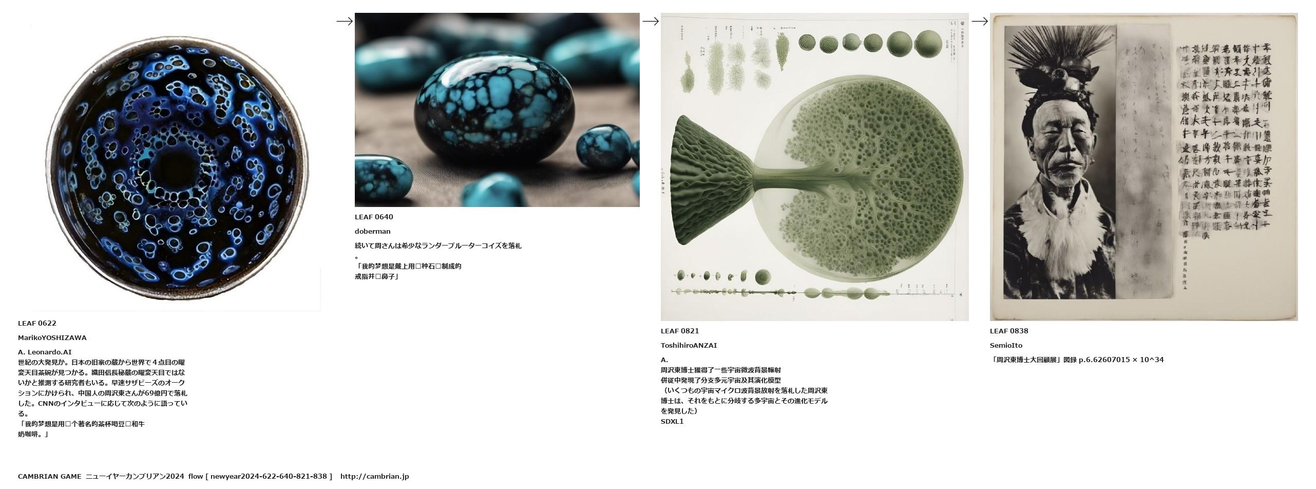 世紀の大発見か。日本の旧家の蔵から世界で4点目の曜変天目茶碗が見つかる。織田信長秘蔵の曜変天目ではないかと推測する研究者もいる。早速サザビーズのオークションにかけられ、中国人の周沢東さんが69億円で落札した。CNNのインタビューに応じて次のように語っている。