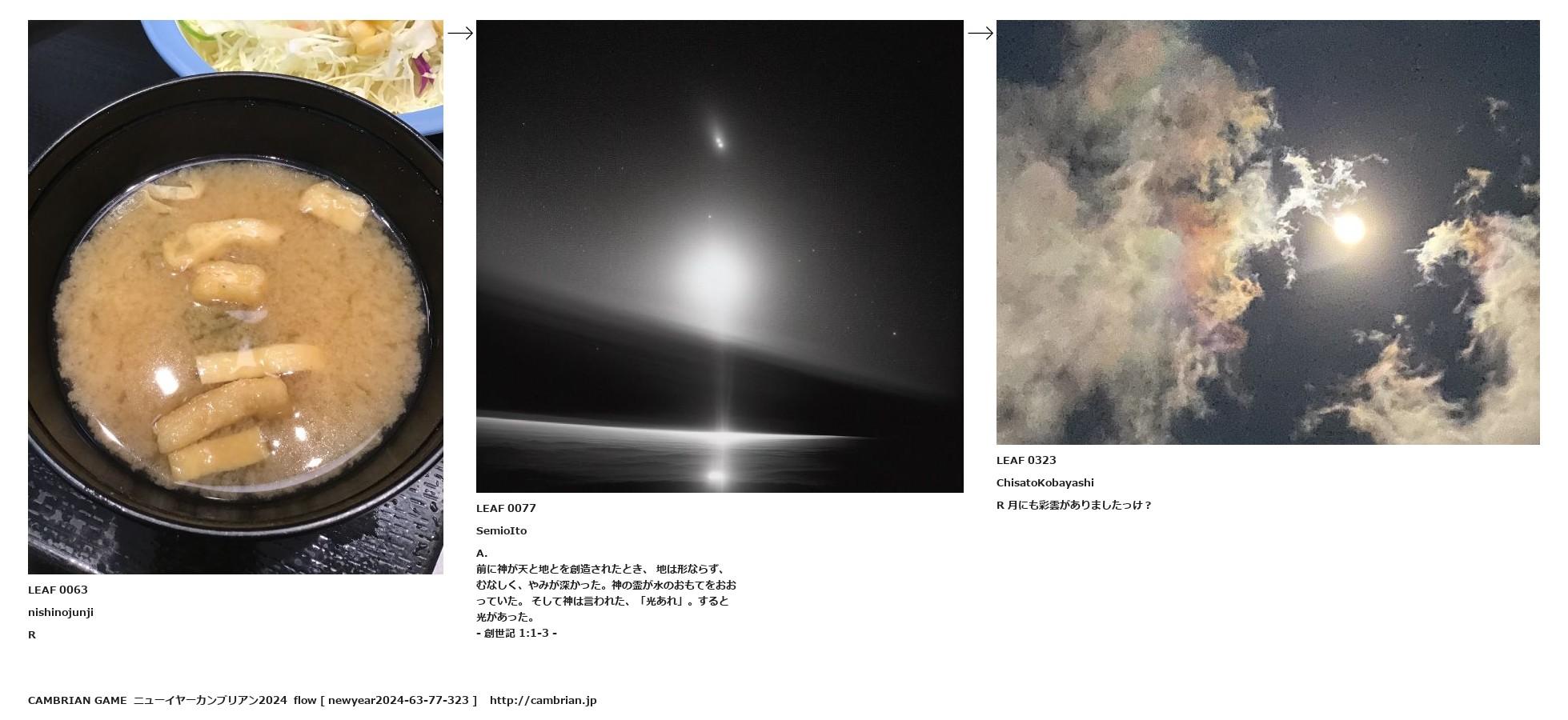 前に神が天と地とを創造されたとき、 地は形ならず、むなしく、やみが深かった。神の霊が水のおもてをおおっていた。 そして神は言われた、「光あれ」。すると光があった。