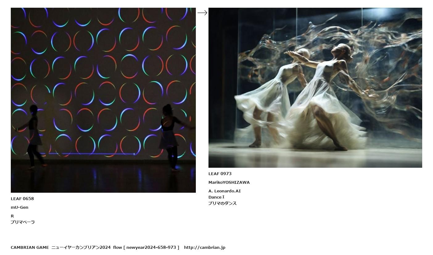 LEAF 0638フローに加えるLEAF 0658mU・GenRプリマベーラ↑ここから上をフローから外す↓ここから下をフローから外すLEAF 0973MarikoYOSHIZAWAA. Leonardo.AIDanceⅠプリマのダンス